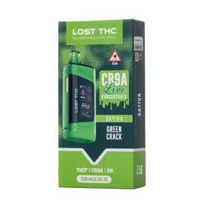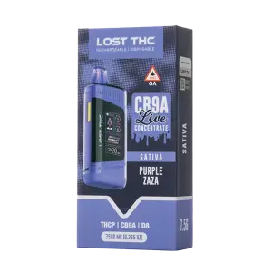 Discover the pinnacle of live cannabis extraction with Lost THC CB9A Live Concentrate Disposables. Each sleek, rechargeable device delivers a full 7.5 grams of terpene-rich CB9A live concentrate, expertly paired with THCP and Delta-8 for a multi-layered, entourage-effect experience. Engineered around a ceramic-core heating element, these disposables preserve the full spectrum of delicate terpenes and cannabinoids, providing ultra-smooth draws and vibrant, true-to-strain flavor.
